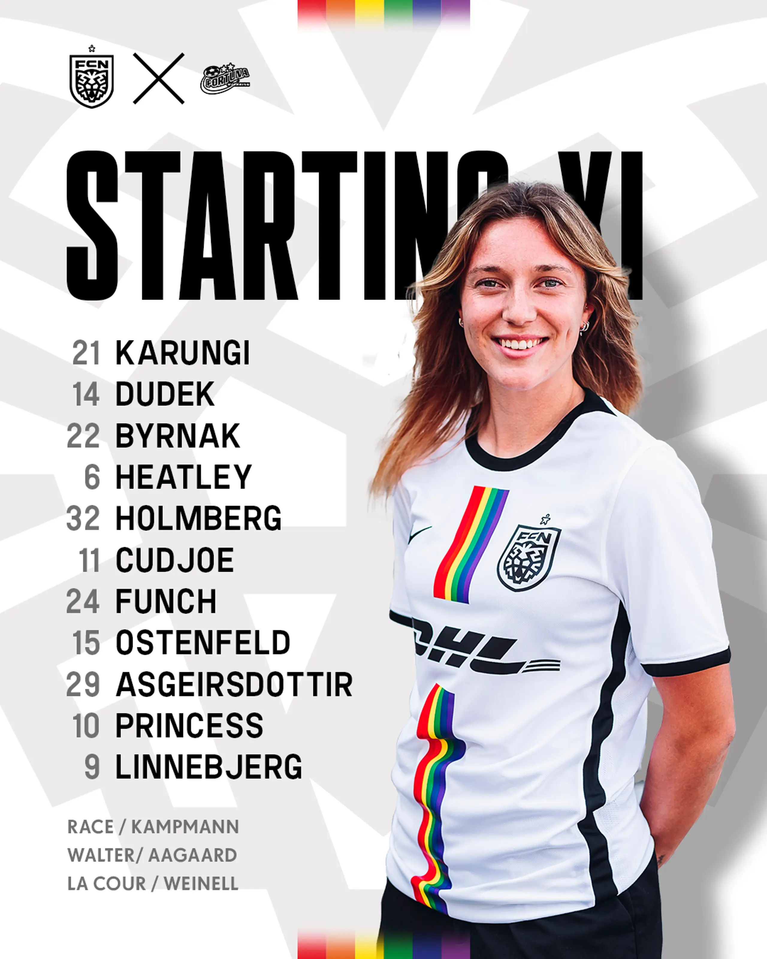 Årets første kamp i Gjensidige Kvindeligaen 26.08.2023 13:30 Cheftræner Chris Sargeant har valgt følgende 11 fra start mod Fortuna Hjørring. Kick-off klokken 16.30. Klubben FCN nedlægger to direktørfunktioner 07.11.2025 Superliga Stil spørgsmål til Fodbolddirektør Alexander Riget 04.11.2025 A-Liga A-Liga Highlights: AGF - FC Nordsjælland 03.11.2025 Superliga Truppen til anden kamp ved Premier League International Cup 03.11.2025