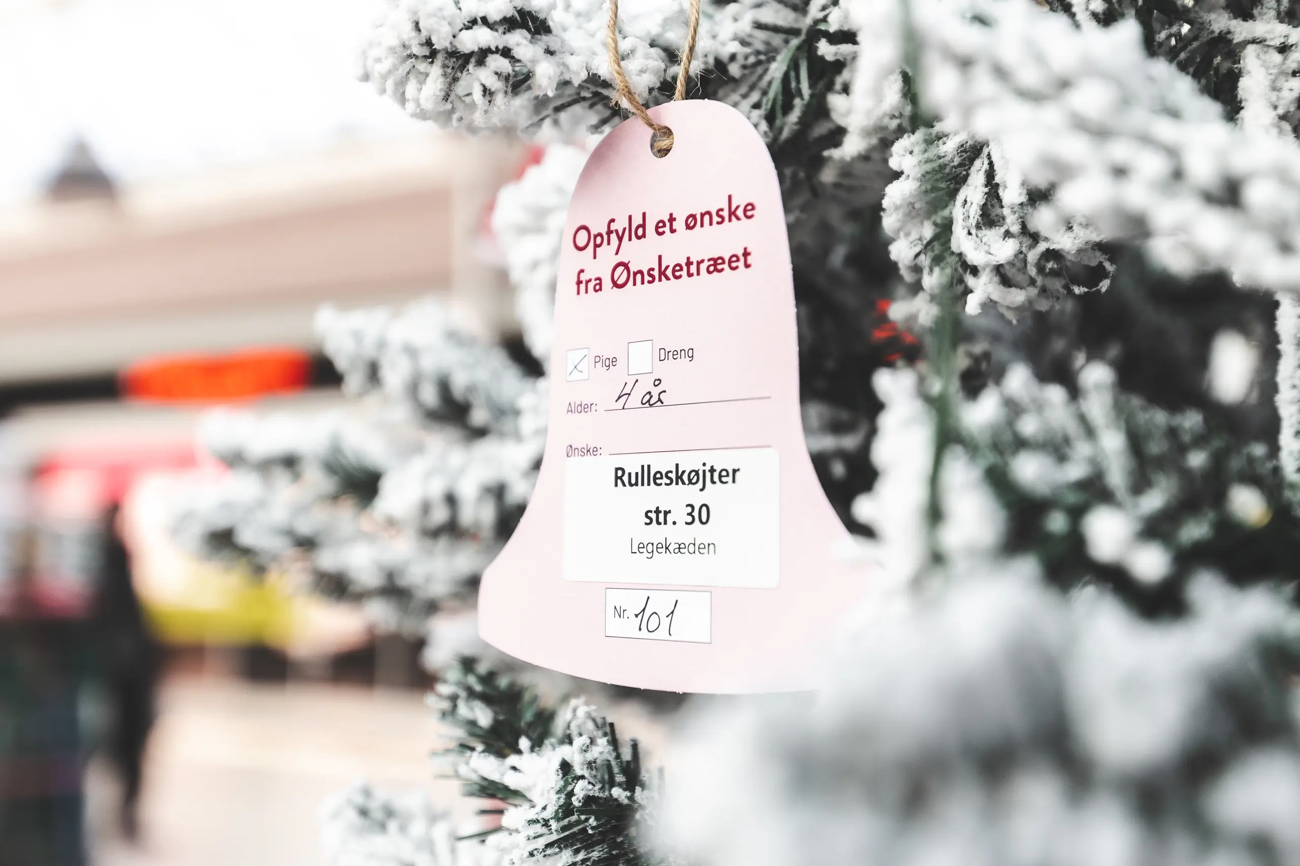'Ønsketræet' står placeret i Farum Bytorv. På træet hænger der hjuleklokker med ønsker fra børn - og disse ønsker kan opfyldes af privatpersoner, der ønsker at gøre en forskel for trængte familier.