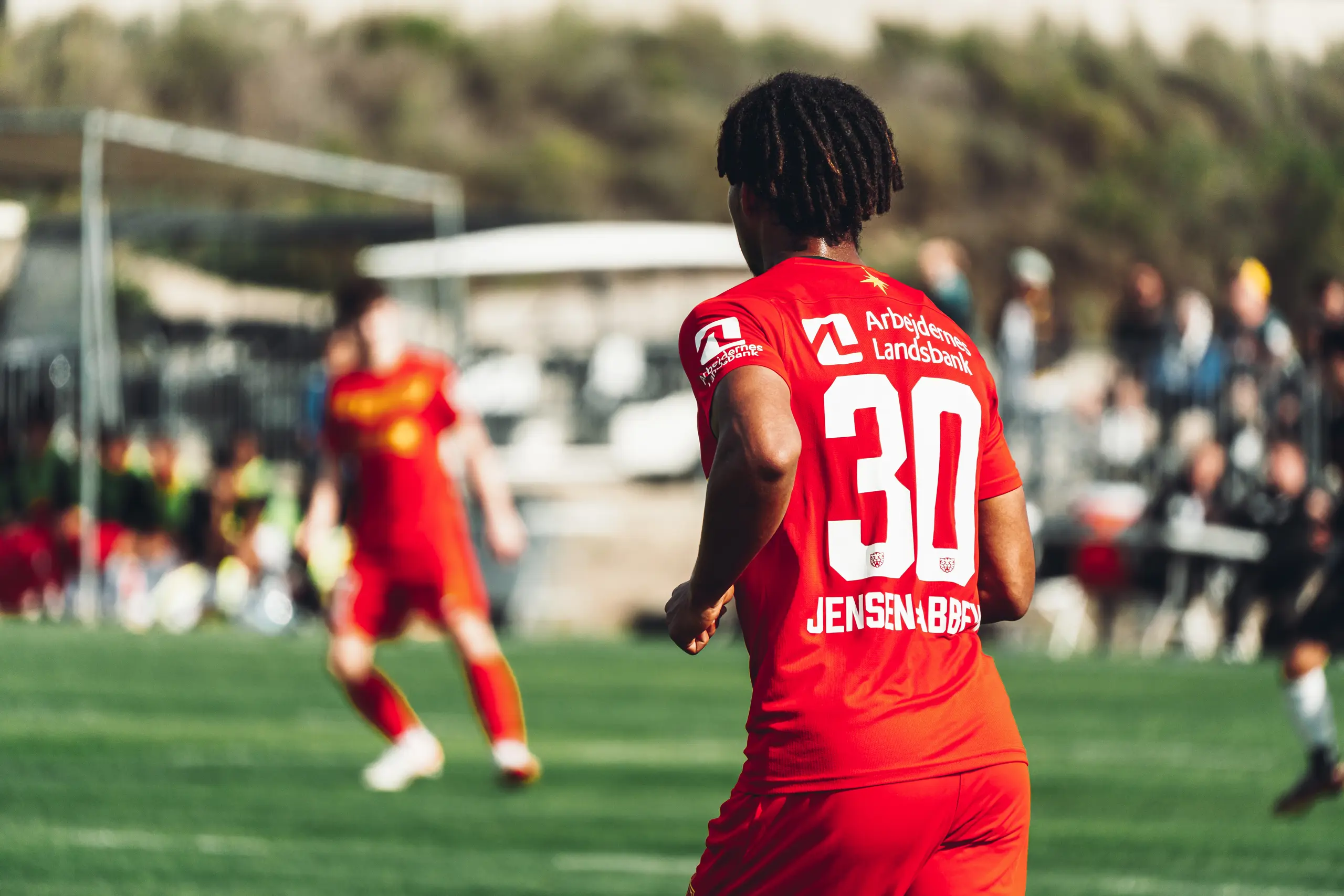 Det rigtige navn er dog Jonas Jensen-Abbew, og efter flotte præstationer på akademiet – bl.a. med U17-DM-guld til følge – fik han debut i Superligaen i foråret 2021. Han var 18 år gammel, og modstanderen var AGF.