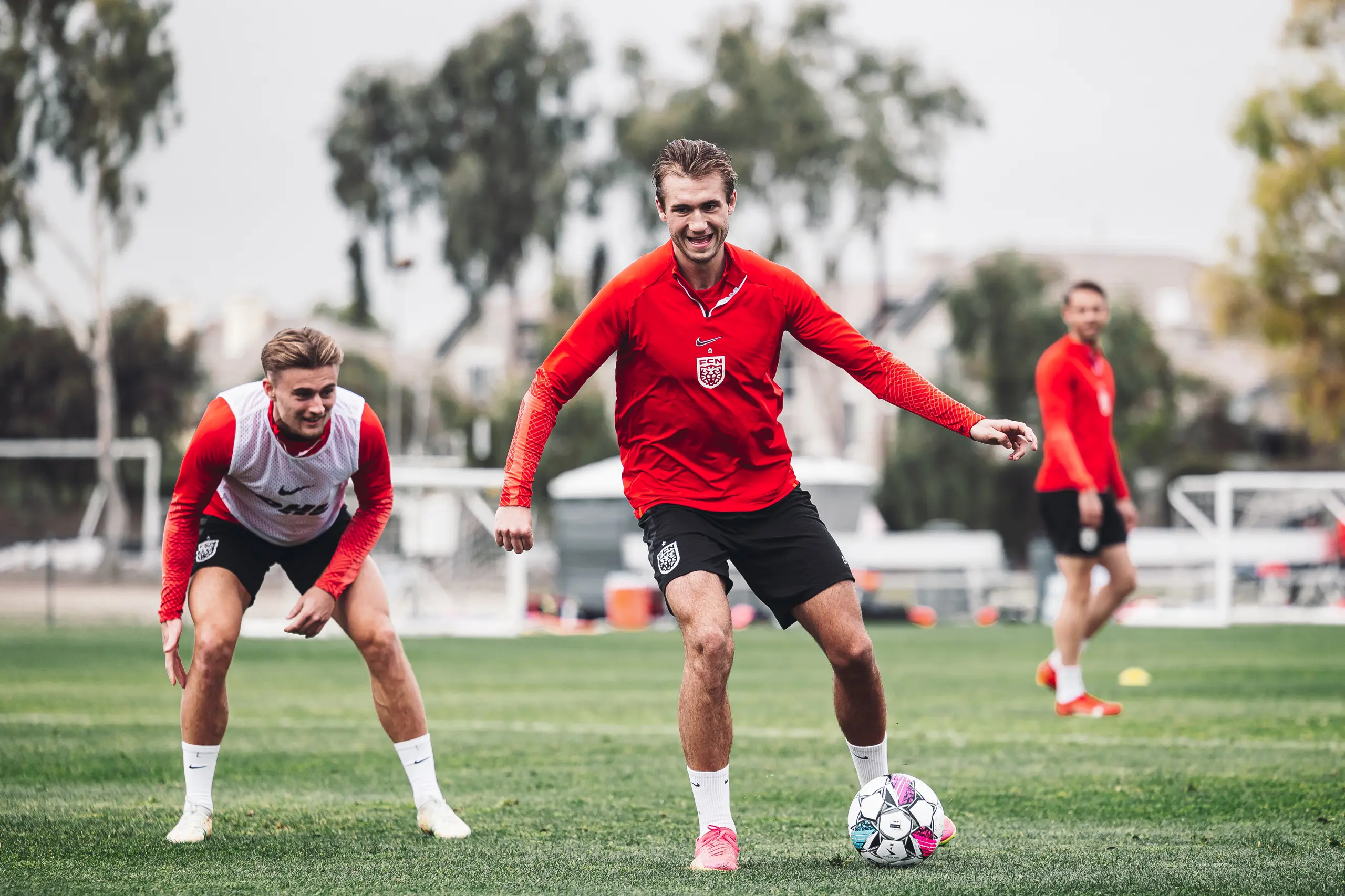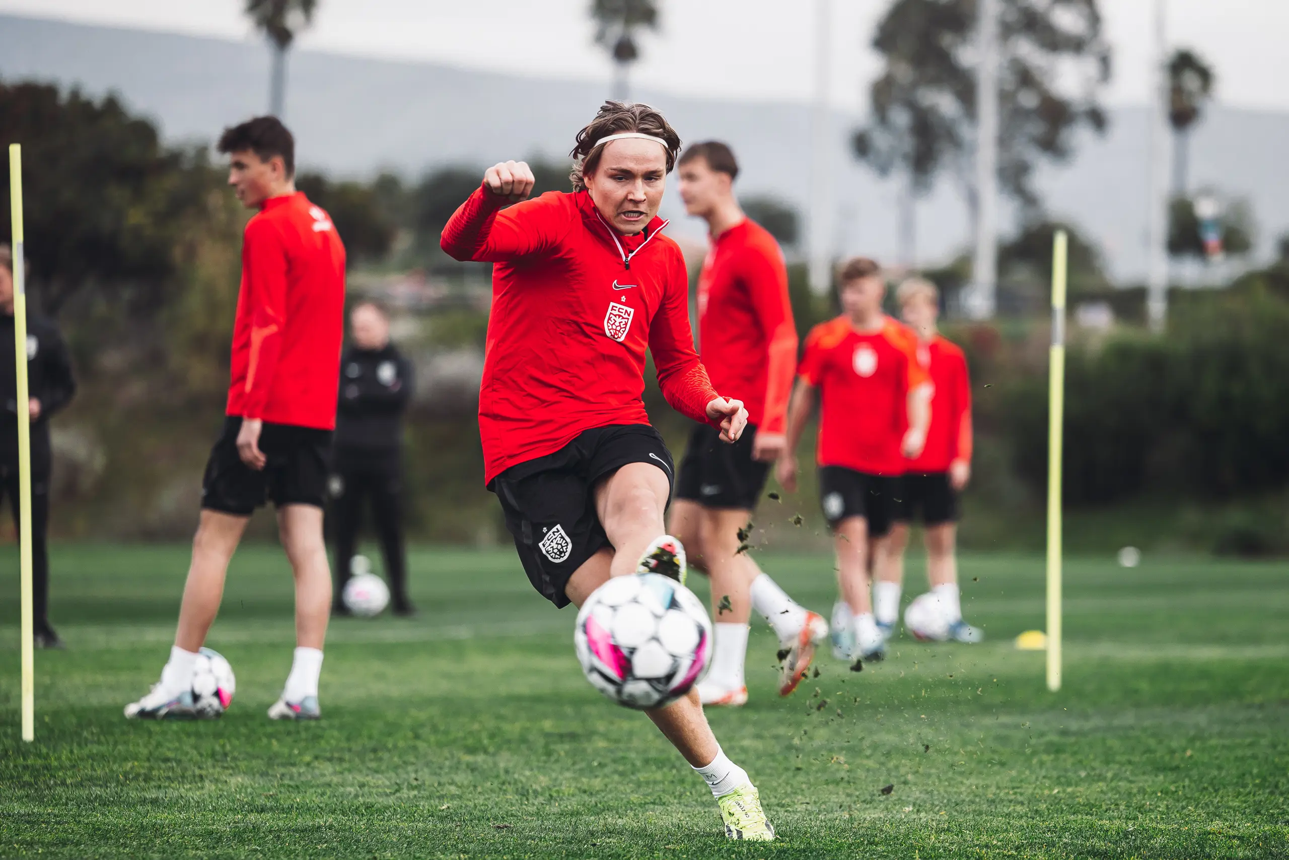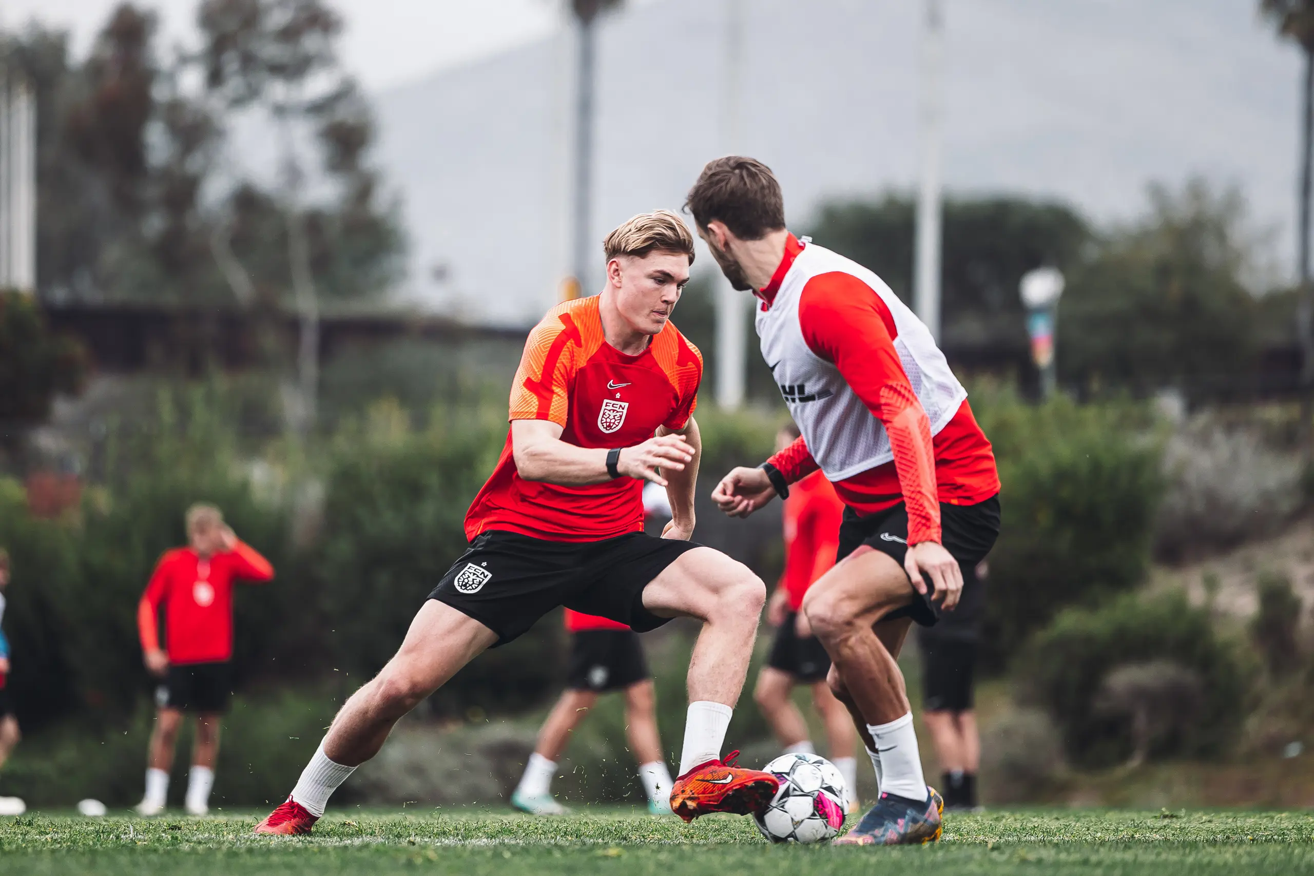Træningslejren i San Diego er snart halvvejs, og det betyder også, at spillerne efter dagens to træningspas kunne se ind i to fridage. Derfor var der også lagt op til en hård dag på kontoret for Superliga-spillerne, da formen skulle testes af i dagens eftermiddagstræning.