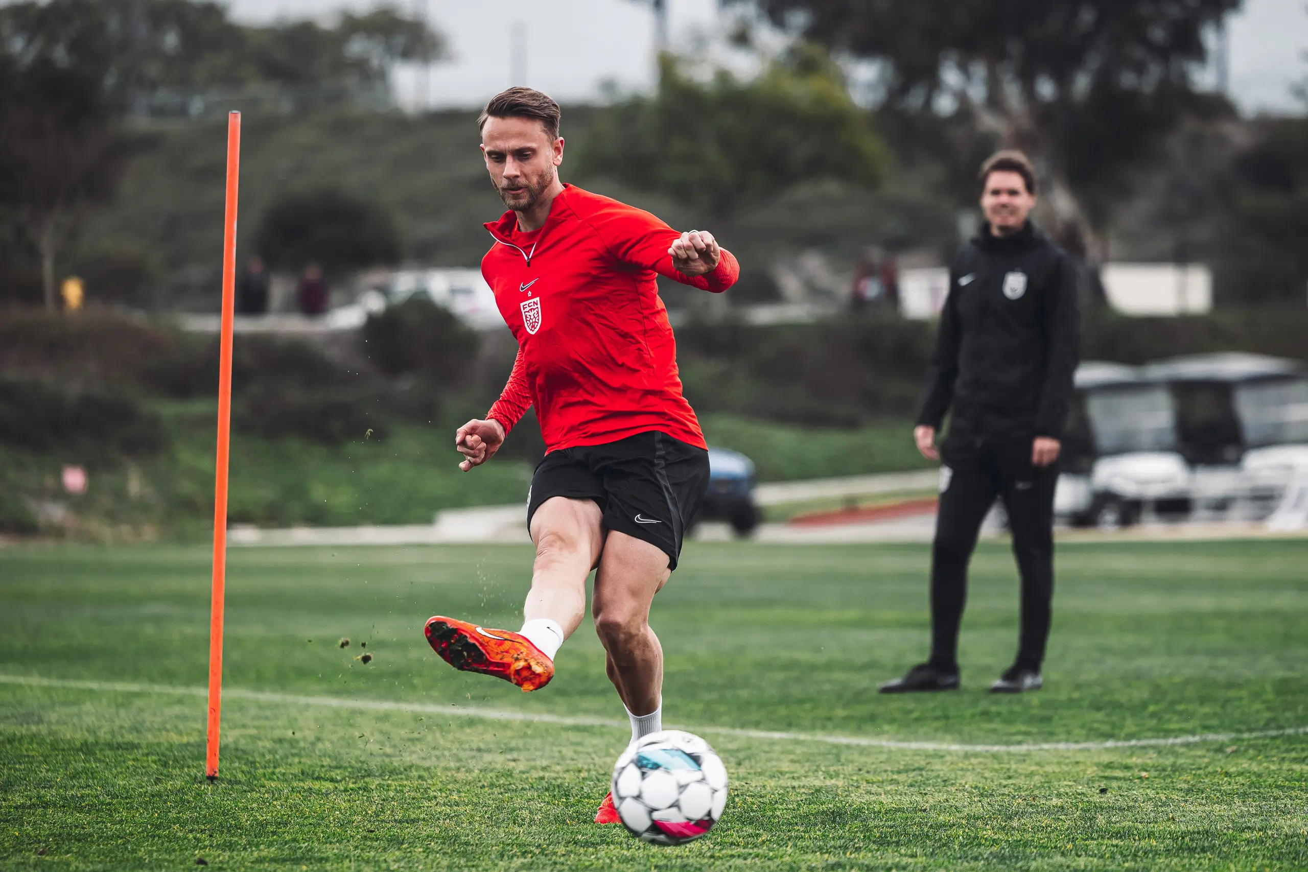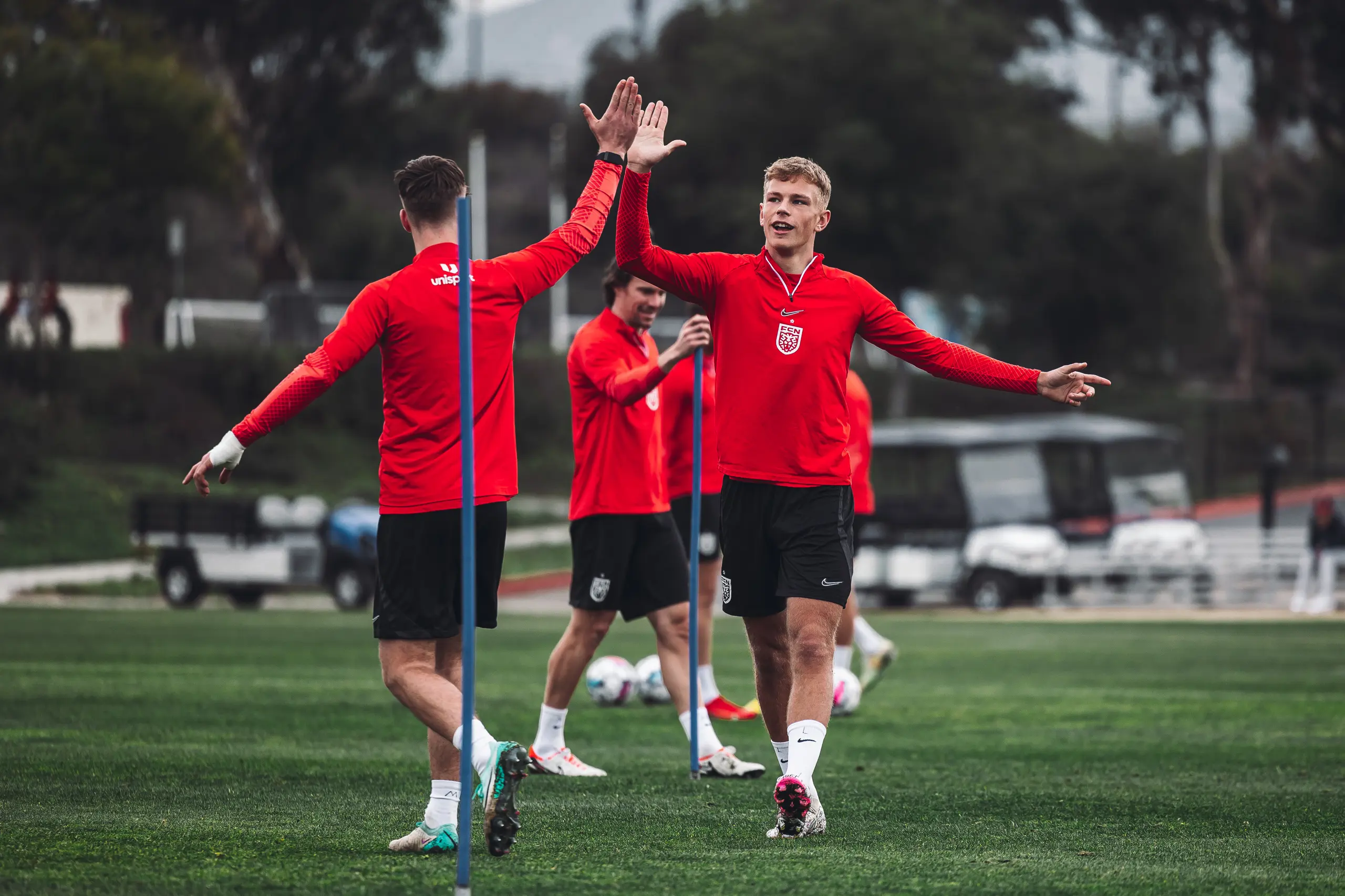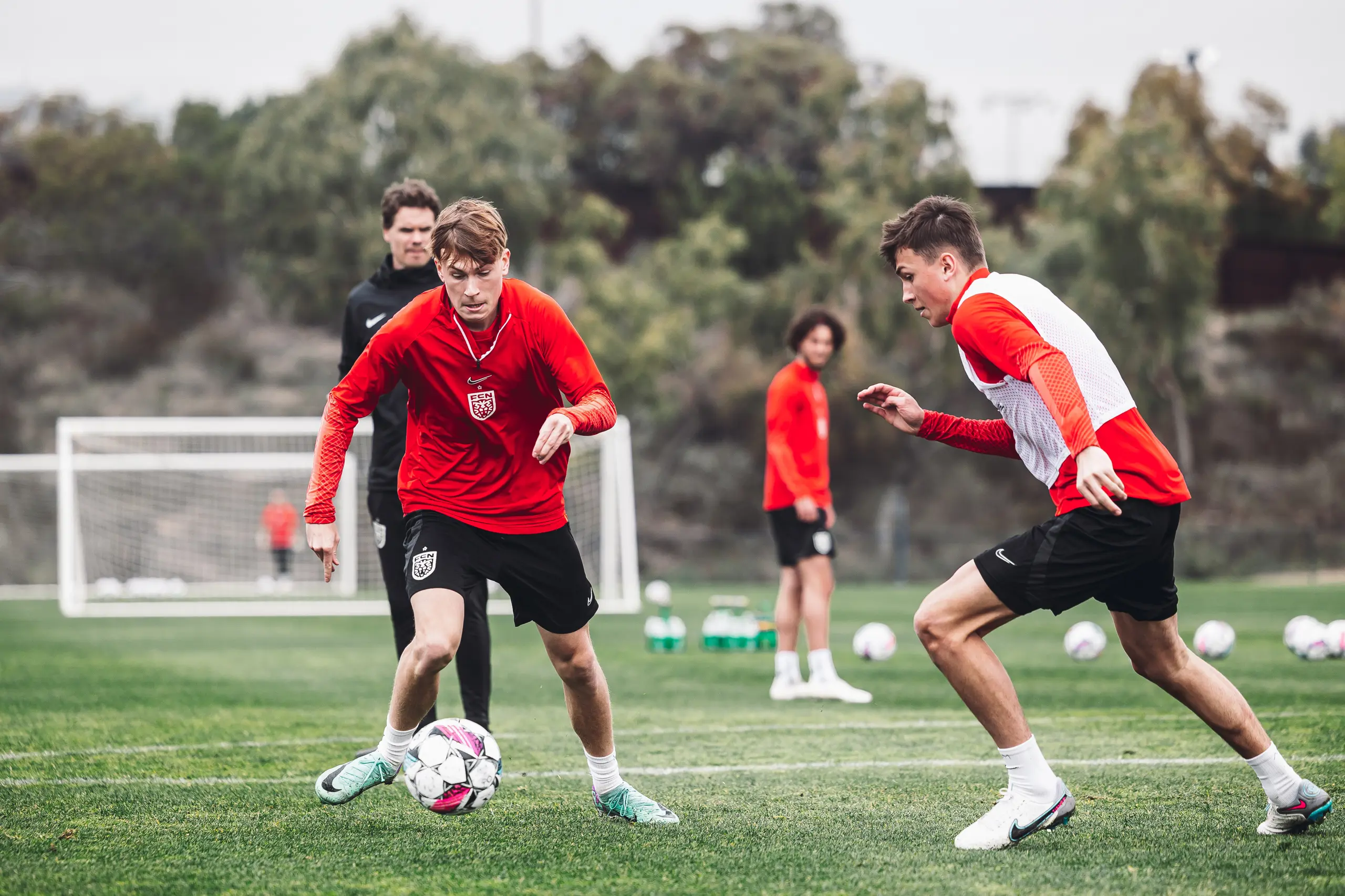 Træningslejren i San Diego er snart halvvejs, og det betyder også, at spillerne efter dagens to træningspas kunne se ind i to fridage. Derfor var der også lagt op til en hård dag på kontoret for Superliga-spillerne, da formen skulle testes af i dagens eftermiddagstræning.