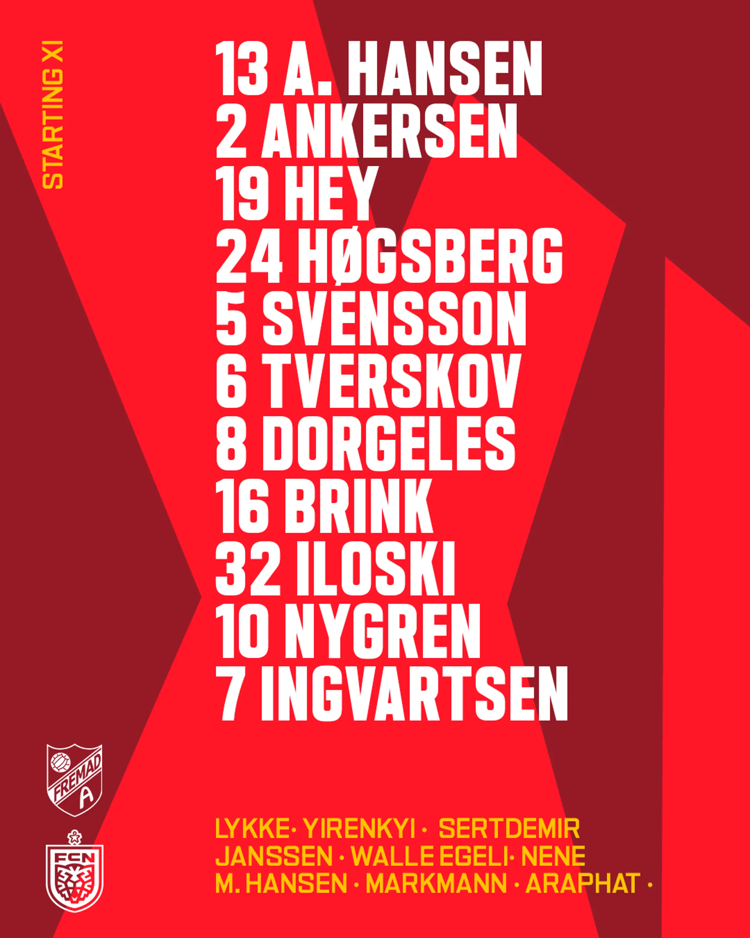 Aftenens startopstilling mod Fremad Amager 25.09.2024 16:30 Så er der 30 minutter til pokalbold på Amager - og aftenens startopstilling er klar! Superliga Stil spørgsmål til Fodbolddirektør Alexander Riget 04.11.2025 Superliga Truppen til anden kamp ved Premier League International Cup 03.11.2025 Superliga 3F Superliga Highlights: FC Nordsjælland - OB 03.11.2025 Superliga Sådan starter vi mod OB 🔥 02.11.2025