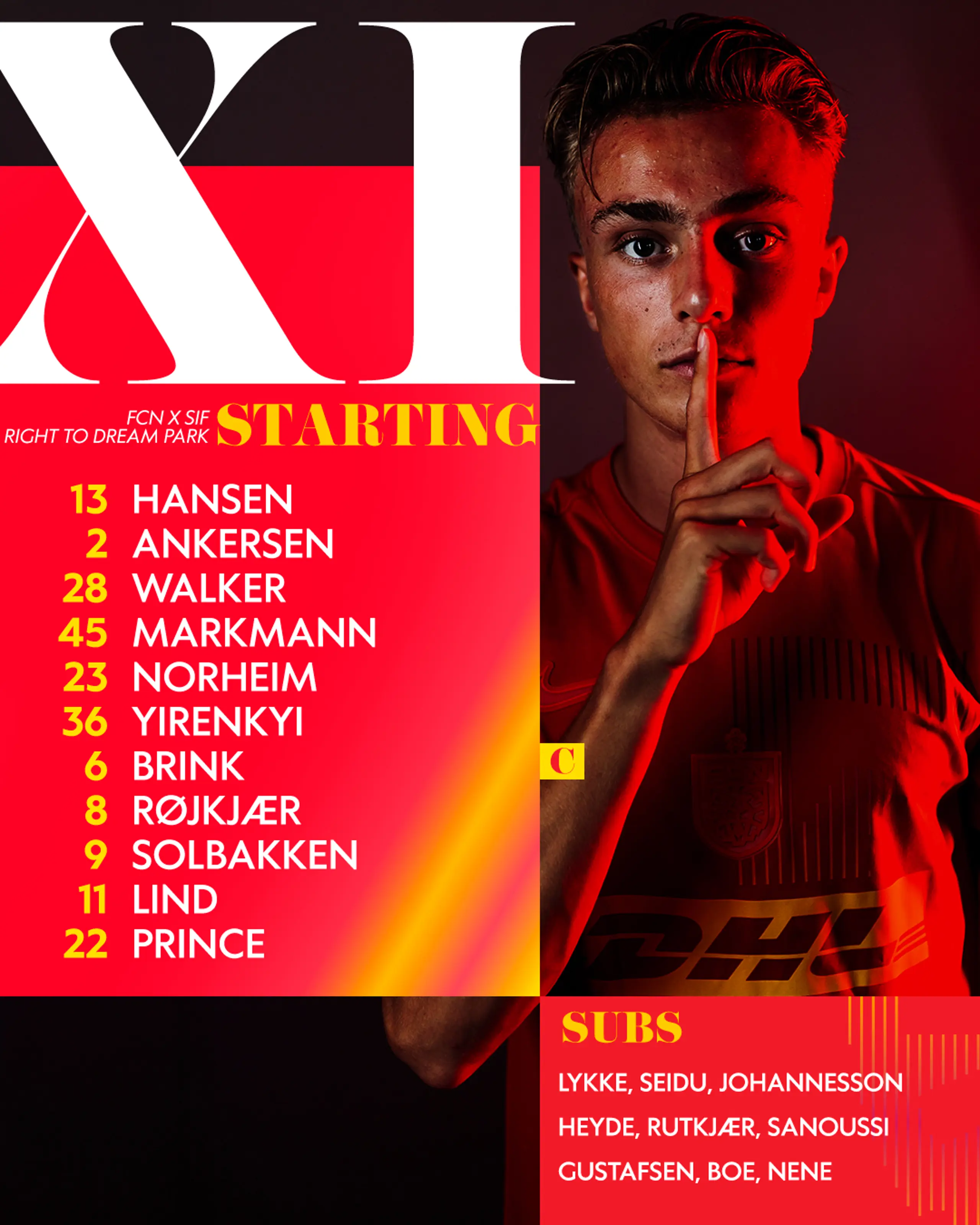 Dagens startopstilling er klar, og du kan stadig nå at komme med, når der er kickoff om en time. Find dine billetter her.