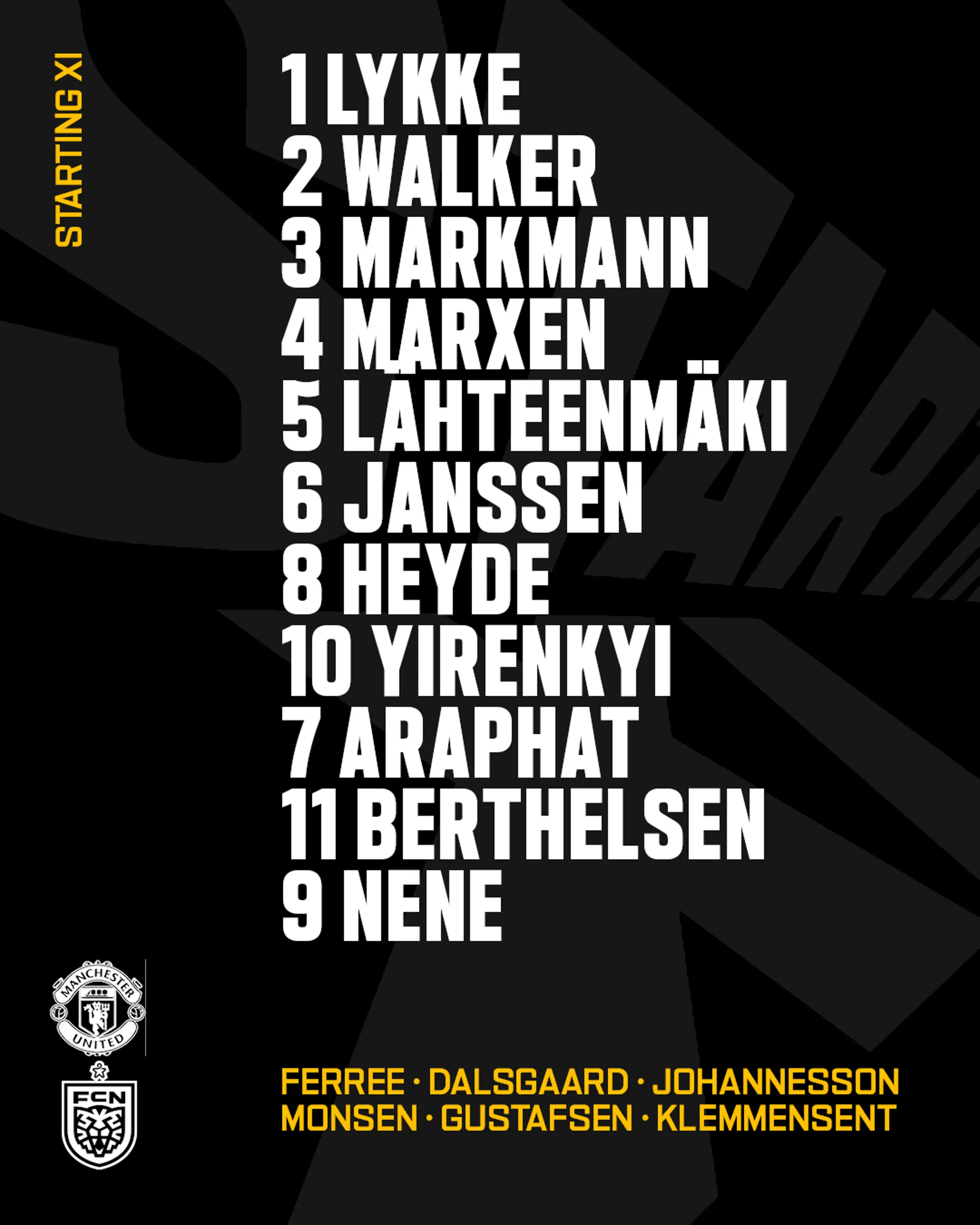 Startopstillingen mod Manchester United 21.01.2025 18:00 Vi er klar til tredje kamp ved Premier League International Cup, når vi om en time møder Manchester United. Her er startopstillingen til opgøret, hvor vi jagter tredje sejr i træk. Se kampen direkte her 📺