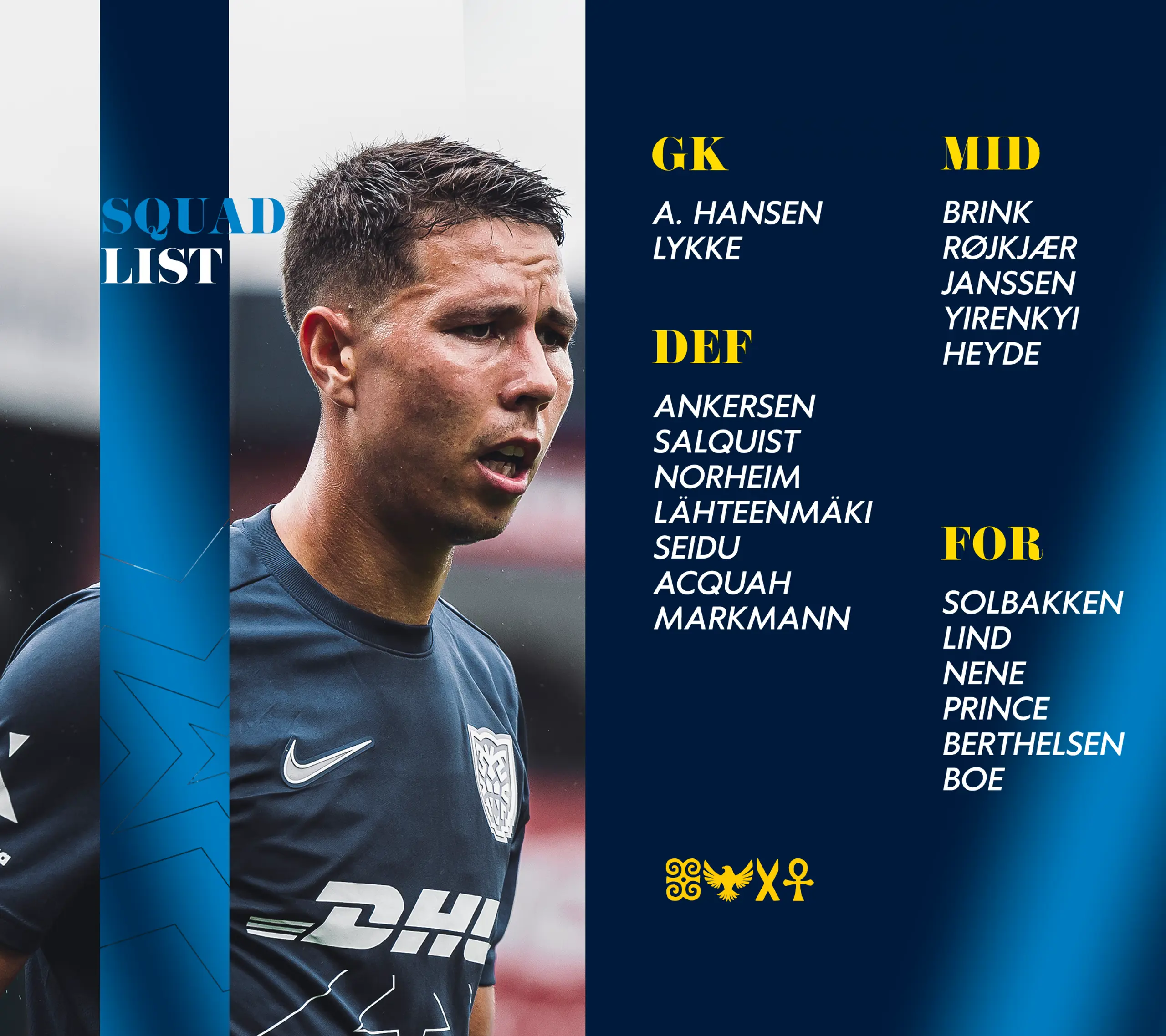 Turen går til Nørreskoven, når hjemmeholdet Vejle Boldklub byder op til dans i 3F Superligaens 11. runde. Trænerteamet har udtaget truppen til opgøret, og her kan de igen råde over Noah Markmann, der har siddet over de seneste to kampe, ligesom også Peter Ankersen er med i bussen til Vejle.