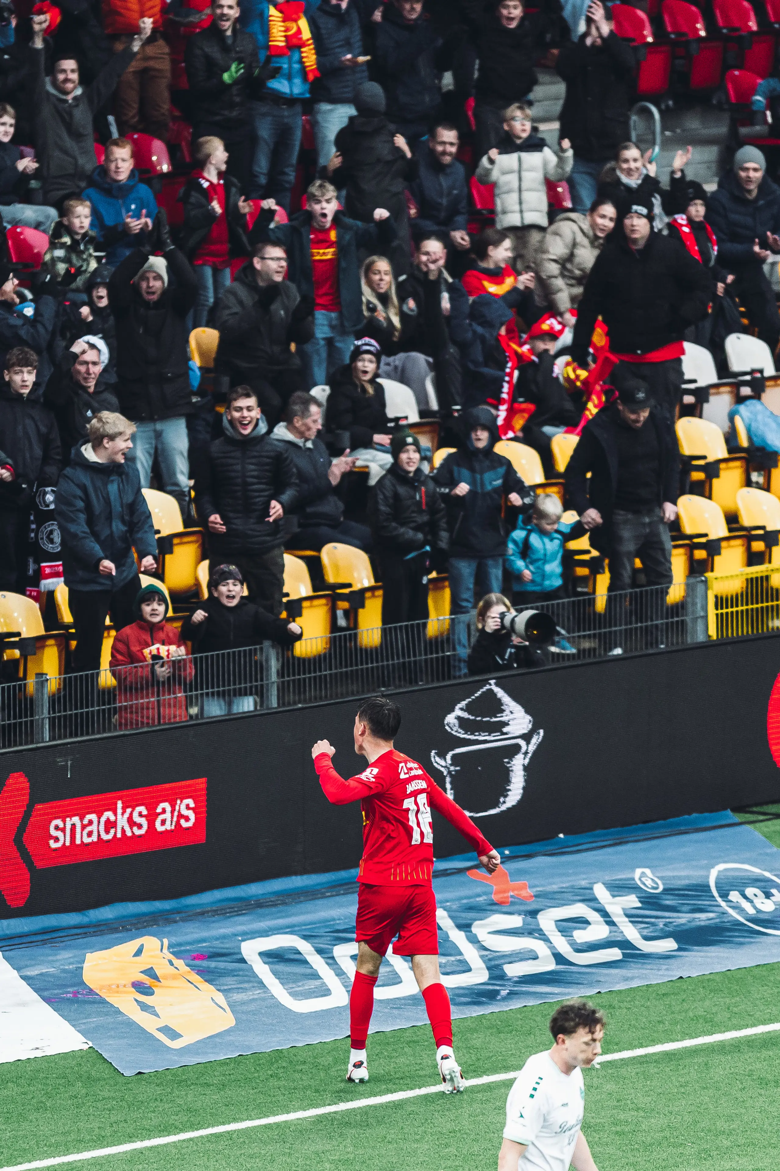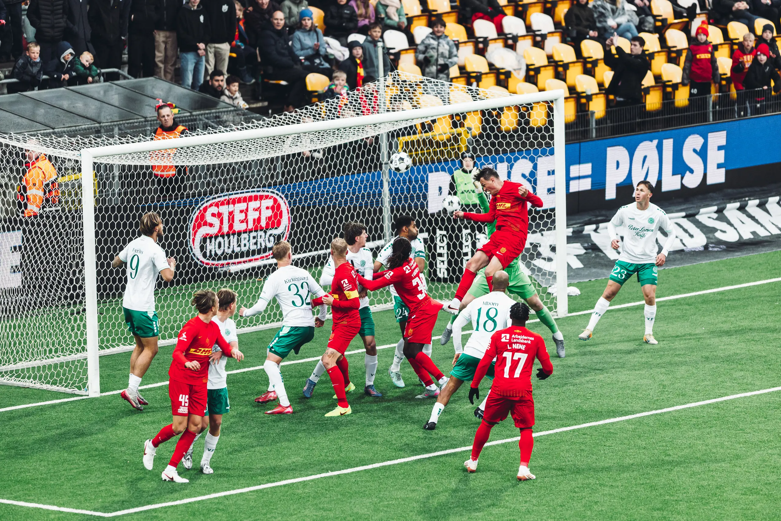 Inde foran mål havde Janssen kun én opgave. Han skulle forsøge at blokere Viborg-keeperen, så nogle af holdkammeraterne kunne få plads i feltet, men sådan gik det ikke. For Heydes hjørnespark lå tæt under mål, men det lå også i den helt rigtige højde for midtbanespilleren. Så da kampuret ramte 89.47 hang han i perfekt balance i luften foran målmanden og kunne heade sejrsmålet til 2-1 i nettet fra meget kort afstand. Og så blev Justin Janssen meget glad.