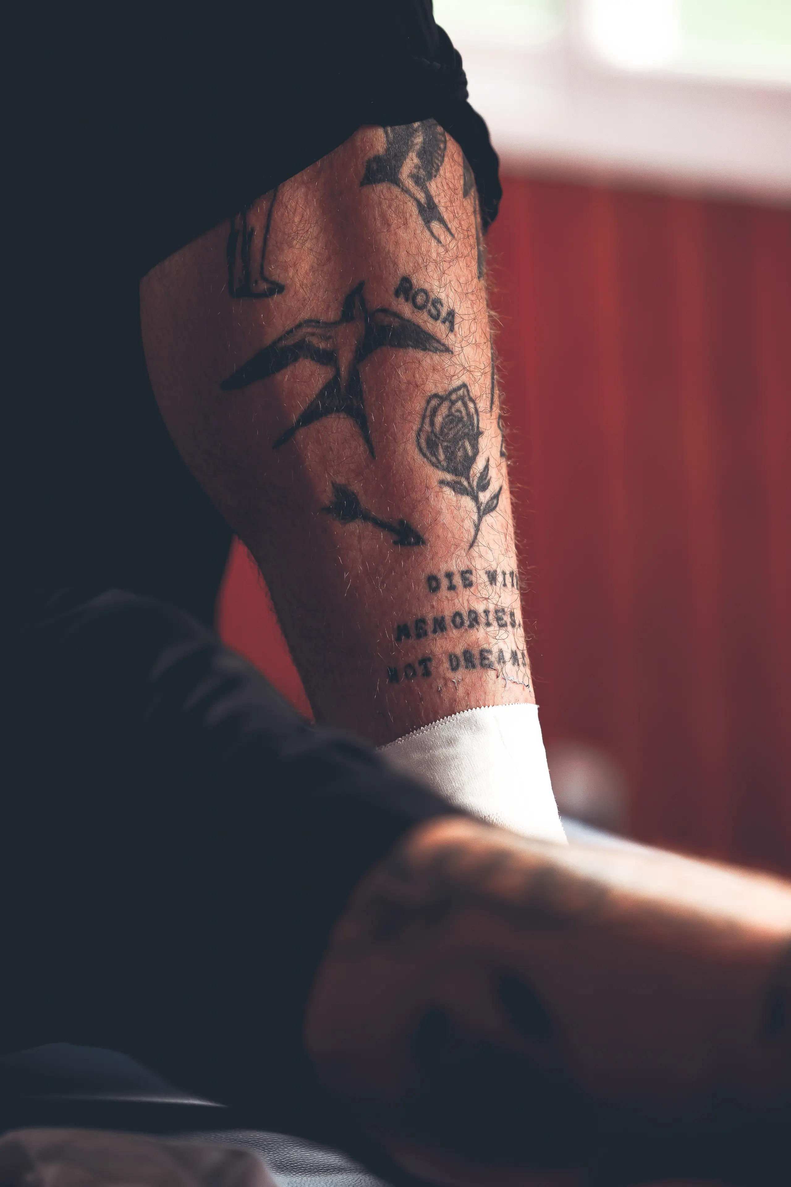 Det er også de tatoveringer, man bedst kan se, men der er faktisk mange flere gemt under strømperne, og de er med til at fortælle historien om, hvem den 30-årige forsvarer er, når han ikke spiller fodbold.