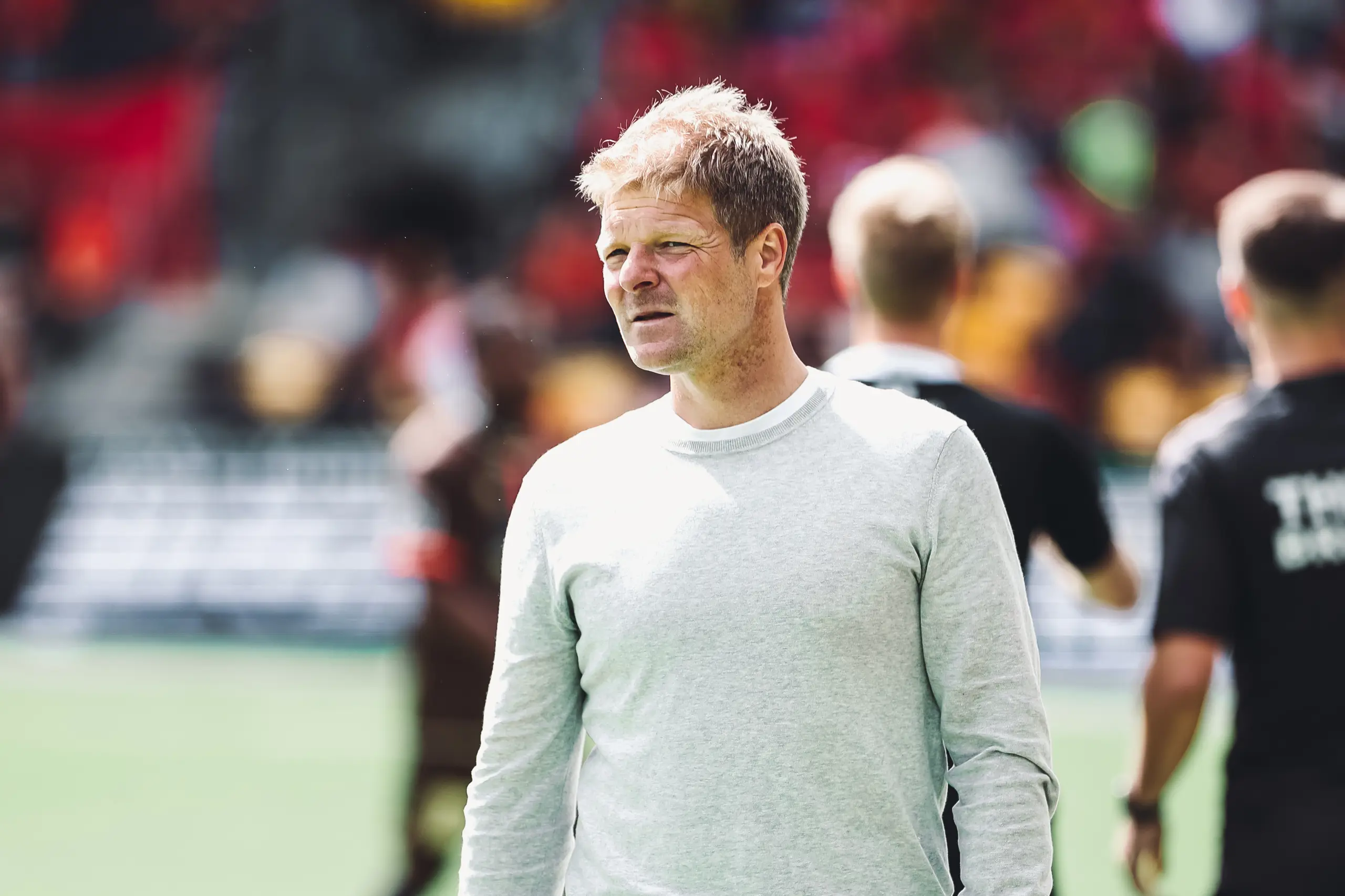 – Især i anden halvleg har vi nogle kæmpestore chancer. Vi har 14 afslutninger og en xG på 1,50, så vi mangler selvfølgelig lidt kynisme, men deres målmand står samtidig en rigtig god kamp i dag, og det skal vi huske at have med. Min frustration går derfor ikke så meget på dét, men mere vores egen udvikling i kampen. – Vi starter rigtig godt i de første 15-20 minutter og får også scoret et mål, men så går vi lidt ned i gear og mister intensiteten i vores pres, samtidig med at vores boldomgang er for langsom, og så inviterer vi Lyngby ind i kampen. På den måde minder det lidt om AaB-kampen, hvor vi også mister lidt af initiativet i stedet for at fortsætte med at jagte den næste scoring.